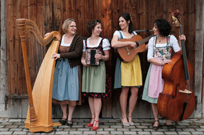 Die vier Damen lieben die kleinen Bühnen - nah am Publikum. Sie haben sich ganz den traditionellen Wirtshausliedern verschrieben und doch finden sich seit kurzem auch eigene Lieder in ihrem Repertoire. Gespielt wird was gefällt und deshalb verirren sich auch manchmal Lieder anderer Genres in ihr Programm. Mit bis zu vierstimmigem Gesang und ihren Instrumenten Hackbrett, Geige, Harfe, Bass, Gitarre, Flöte, Minimalpercussion sowie Handharmonika inszenieren sie diese auf ihre eigene Art.